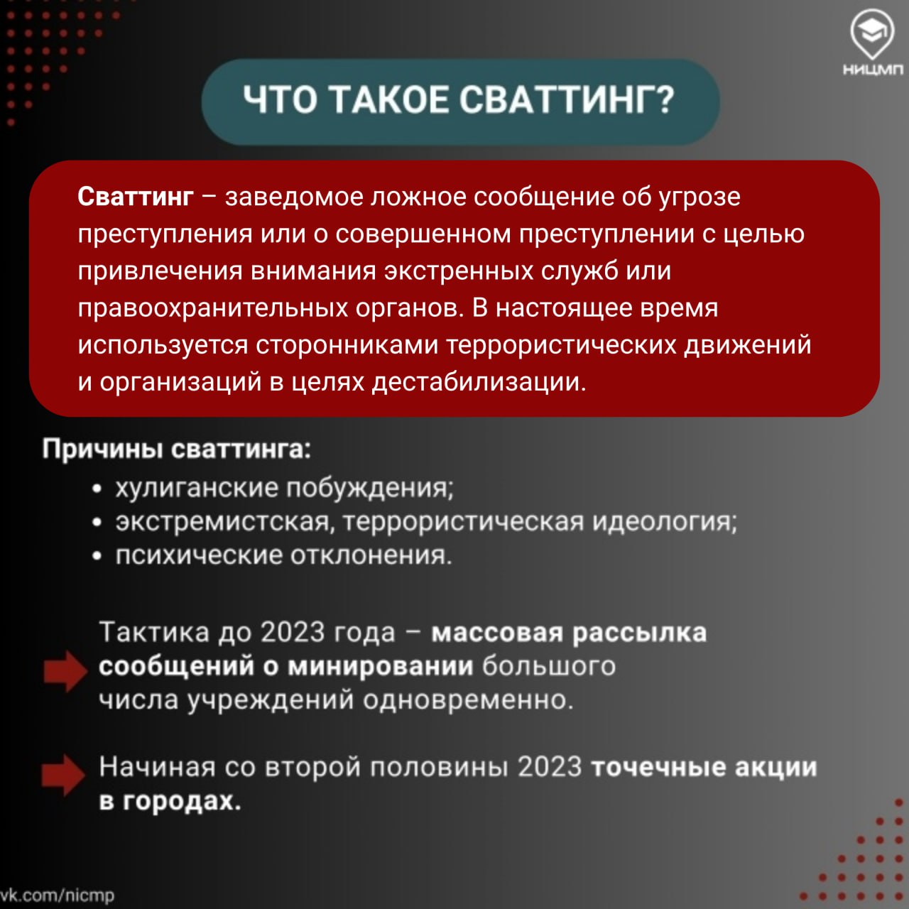 Сообщения распространяются в социальных сетях и мессенджерах в виде репостов из «специальных» каналов и чатов. Это транслируется, в том числе в форме массовых рассылок в школьные чаты для детей и родителей. Чаще всего заведомо ложное сообщение об угрозе теракта поступает относительно объектов с массовым скоплением людей: школы, колледжи, вузы, торгово-развлекательные комплексы и т.д.