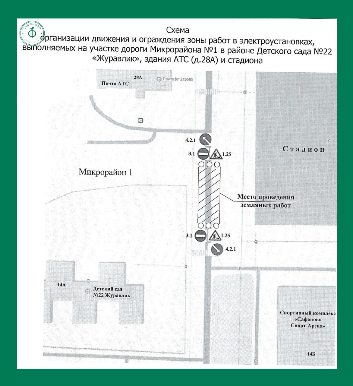 В связи с проведением аварийных работ Сафоновскими РЭС филиала ПАО «Россети Центр» - «Смоленскэнерго» 27.10.2025 года с 10:00 и до окончания работ будет перекрыто движение на участке дороги в микрорайоне-1 г. Сафоново в районе детского сада № 22 «Журавлик» (д. 14А), здания АТС (д. 28А) и стадиона МБУ ФОК «Сафоново Спорт-Арена».